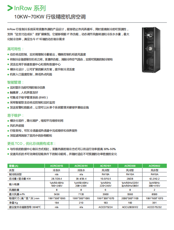 InRow 系列 10KW~70KW 行級(jí)精密機(jī)房空調(diào)