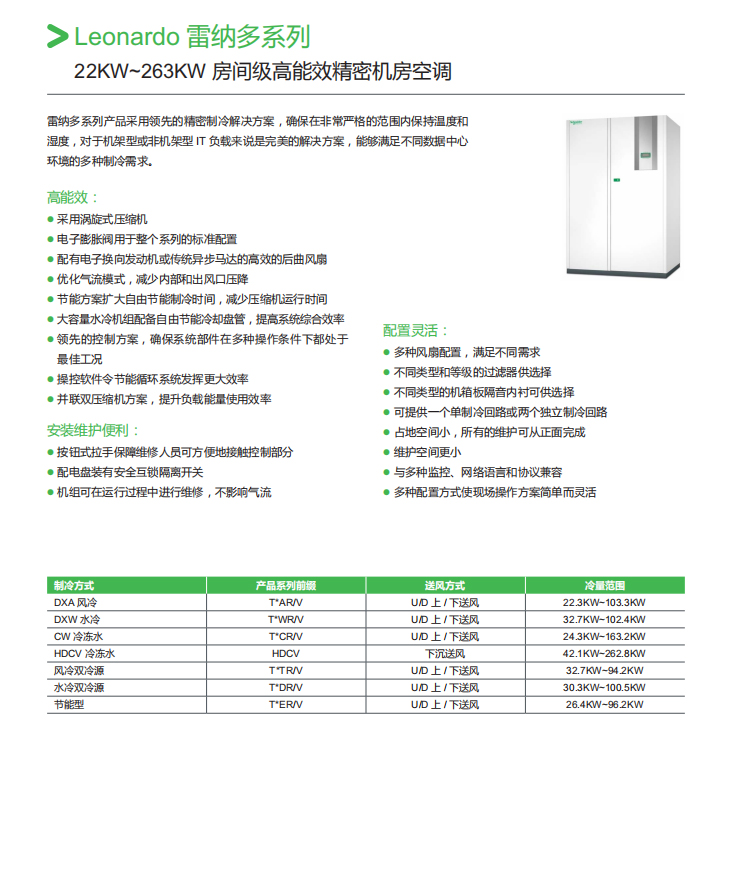 Leonardo 雷納多系列 22KW~263KW 房間級(jí)高能效精密機(jī)房空調(diào)